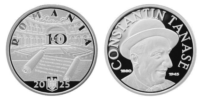 Începând cu data de 13 octombrie 2025, Banca Națională a României lansează în circuitul numismatic o monedă din argint cu tema 145 de ani de la nașterea lui Constantin Tănase. Caracteristicile monedei sunt următoarele: Metal – argint Valoare nominală – 10 lei Titlu – 999‰ Formă – rotundă Diametru – 37 mm Greutate – 31,103 g Cant – zimțat Calitate – proof Aversul monedei prezintă o compoziție reprezentând un teatru de vară semicircular, un pergament pe care se regăsesc versuri ale lui George Ranetti, inscripția „ROMANIA” în arc de cerc,…