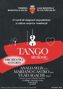 Melomanii sunt invitaţi marţi, 14 martie, de la ora 18, la concertul „Tango simfonic. Şi atât”, organizat de către Primăria Zalău și Casa Municipală de Cultură Zalău, cu prilejul Zilei Internaționale a Femeii. Evenimentul cultural va avea loc în sala de spectacole din Clădirea Transilvania şi îi va aduce în faţa publicului pe membrii orchestrei Alegria. Pe scenă, alături de dirijorul Vlad Agachi, vor avea reprezentații binecunoscuta artistă Analia Selis și pianistul și compozitorul argentinian Mariano Castro, care vor propune o nouă abordare asupra muzicii clasice, combinate cu acordurile ritmurilor latine.…