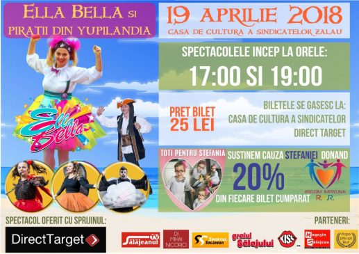 Spectacolul dedicat copiilor ”Ella Bella și Pirații din Yupilandia” va fi pus în scenă pe data de 19 aprilie 2018, la Casa de Cultură a Sindicatelor din Zalău. Îndrăgitul personaj de poveste Ella Bella se întoarce în orașul nostru. De data aceasta în varianta completă, alături de neînfricații pirați din tărâmul Yupilandia. La inițiativa Grupului R.R.R. ”Reușim Împreună”, organizatorul spectacolului susține cauza Ștefaniei donând 20 la sută din totalul încasărilor. ”Deoarece Zalăul nu apare pe harta spectacolelor de acest gen, iar mulți dintre părinți aleg să își ducă copiii la…