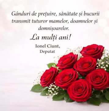 Ionel Ciunt, deputat, vă urează un 8 Martie plin de împliniri! 8 martie 20266 martie 2026 Magazin Salajean Mai mult...
