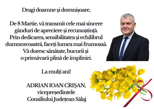 Adrian Ioan Crişan, vicepreşedintele Consiliului Judeţean Sălaj, vă urează un 8 Martie plin de împliniri! 8 martie 20266 martie 2026 Magazin Salajean Mai mult...