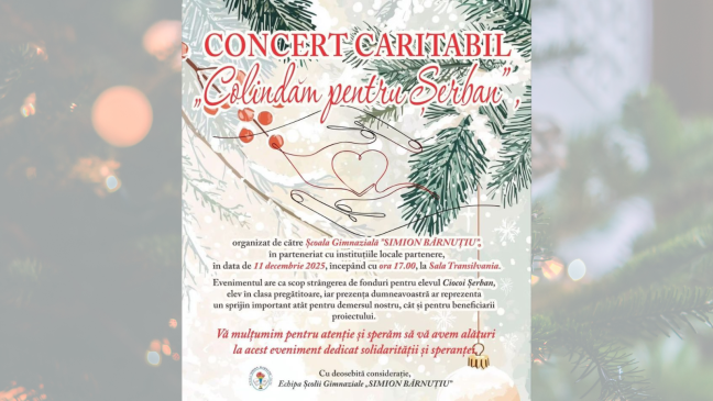 Concertele și evenimentele caritabile de sărbători sunt în toi, iar mobilizarea sălăjenenilor este, fără îndoială, una de poveste. Un concert caritabil va avea loc în 11 decembrie, un eveniment în care muzica se împletește cu generozitatea și solidaritatea, organizat de Școala Gimnazială „Simion Bărnuțiu” din Zalău. Scopul acestuia îl reprezintă strângerea de fonduri pentru Ciocoi Șerban, elev în clasa pregătitoare al școlii zălăuane, iar fiecare contribuție poate aduce o schimbare reală. Concertul „Colindăm pentru Șerban”, organizat de unitatea de învățământ, va avea loc joi, începând cu ora 17, la Sala…