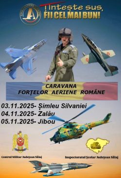 Eveniment important în Sălaj. În perioada 3 – 5 noiembrie 2025, personalul din Statul Major al Forțelor Aeriene organizează și desfășoară în colaborare cu Centrul Militar Județean Sălaj campania de promovare a Forţelor Aeriene în vederea recrutării de viitori candidaţi pentru profesia militară prin formare profesională în instituţiile de învăţământ universitar şi postliceal. La această activitatea vor participa atât elevi și studenți militari din instituțiile de învățământ ale Forțelor Aeriene, cât și personal militar activ, piloți și controlori de trafic aerian. În cadrul acestei activități vor fi prezentate informații privind…