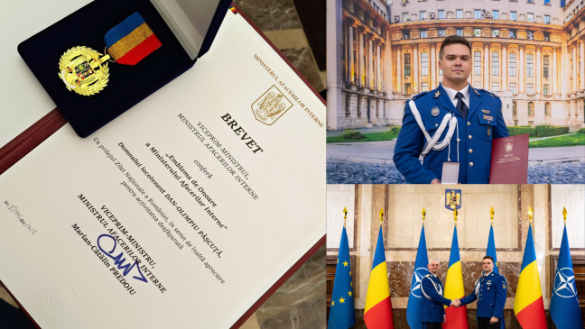 Locotenentul Dan-Olimpiu Pășcuță, onorat cu „Emblema de Onoare a Ministerului Afacerilor Interne”.