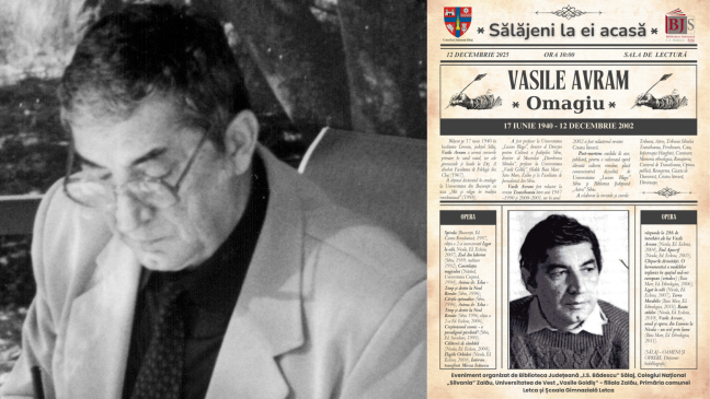 Personalitatea scriitorului şi profesorului Vasile Avram va fi omagiată printr-un eveniment organizat în sala de lectură a Bibliotecii Județene „I. S. Bădescu” Sălaj, ce va avea loc joi, 12 decembrie, începând cu ora 10. Născut la 17 iunie 1940, în localitatea sălăjeană Lemniu , Vasile Avram a urmat cursurile primare în satul natal, iar mai apoi, cele gimnaziale și liceale la Dej. Mai mult, Vasile Avram este absolvent al Facultății de Filologie din Cluj, în 1967, iar în 1998 și-a susținut doctoratul în etnologie la Universitatea din București, cu teza…