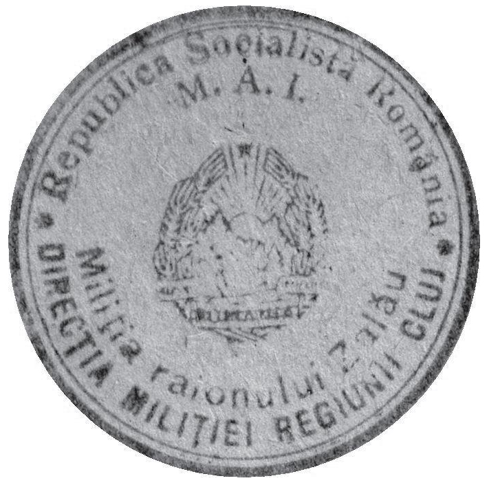 În exerga primului sigiliu, mărginită de două cercuri liniare la exterior, este legenda: *Republica Socialistă România / M. A. I. *DIRECȚIA MILIȚIEI REGIUNII CLUJ / Miliția raionului Zalău.
