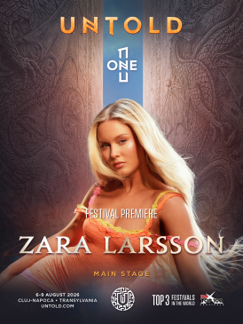 UNTOLD aduce un nou superstar internațional în premieră în România, la un festival. Zara Larsson, artista suedeză cu piese și dansuri virale cu zeci de miliarde de ascultări și vizualizări, numeroase premii, inclusiv nominalizări la Grammy și Brit Awards, își pregătește debutul la UNTOLD ONE, ediția care marchează o nouă eră a festivalului situat pe locul 3 în lume în topul global al celor mai bune festivaluri – Top 100 Festivals. Hituri precum „Lush Life”, „Ain’t My Fault”, „Symphony” și ,,Never Forget You” vor fi cântate live pe scena principală, îmbinate cu coregrafiile Zarei care sunt virale în toată lumea.