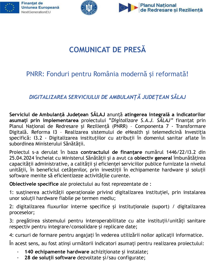 1. […] Comunicat de presă apare prima dată în Magazin Sălăjean. Citeste mai […]