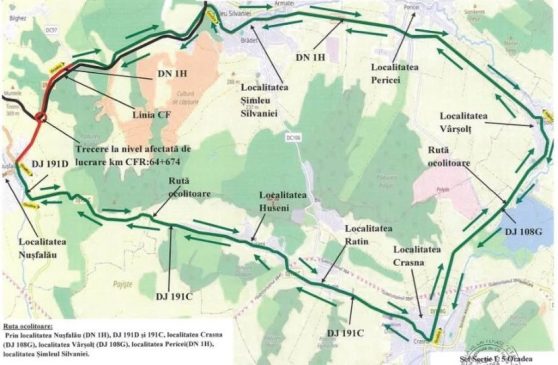 În acest interval orar, traficul către oraș va fi deviat pe ruta ocolitoare stabilită, prin: Nușfalău (DN1H), DJ191D și DJ191C, Crasna (DJ108G), Vârșolț (DJ108G), Pericei (DN1H).