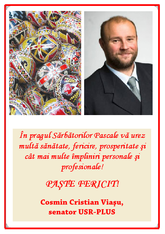 Cosmin Cristian Viaşu, senator USR-PLUS, vă urează SĂRBĂTORI FERICITE! 4 aprilie 20212 aprilie 2021 Magazin Salajean Share Whatsapp Email