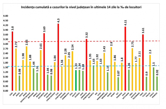 Situația privind incidența coronavirusului devine tot mai gravă în Sălaj. Județul Sălaj se află în acest moment pe locul doi în privința incidenței îmbolnăvirii cu noul coronavirus: 4.11 la o mie de locuitori. Astfel, Sălajul este pe locul 2 din 42 (41 județe și municipiul București) în privința incidenței coronavirusului raportată la o mie de locuitori. Pe primul loc rămâne județul Cluj, cu o incidență de 4.3 iar pe locul al treilea municipiul București cu o incidență de 3.69 la mia de locuitori, date statistice valabile joi, la ora 13. În ceea ce privește numărul de cazuri, de la începutul pandemiei s-au înregistrat 2.491 de cazuri (statistică valabilă joi la ora 13) este printre cele mai mici din țară, ținând cont, evident, și de numărul de locuitori. Pe de altă parte, tot astăzi s-a înregistrat un record negativ privind cazurile din ultimele 24 de ore în Sălaj, numărul celor depistați pozitivi fiind de 198.