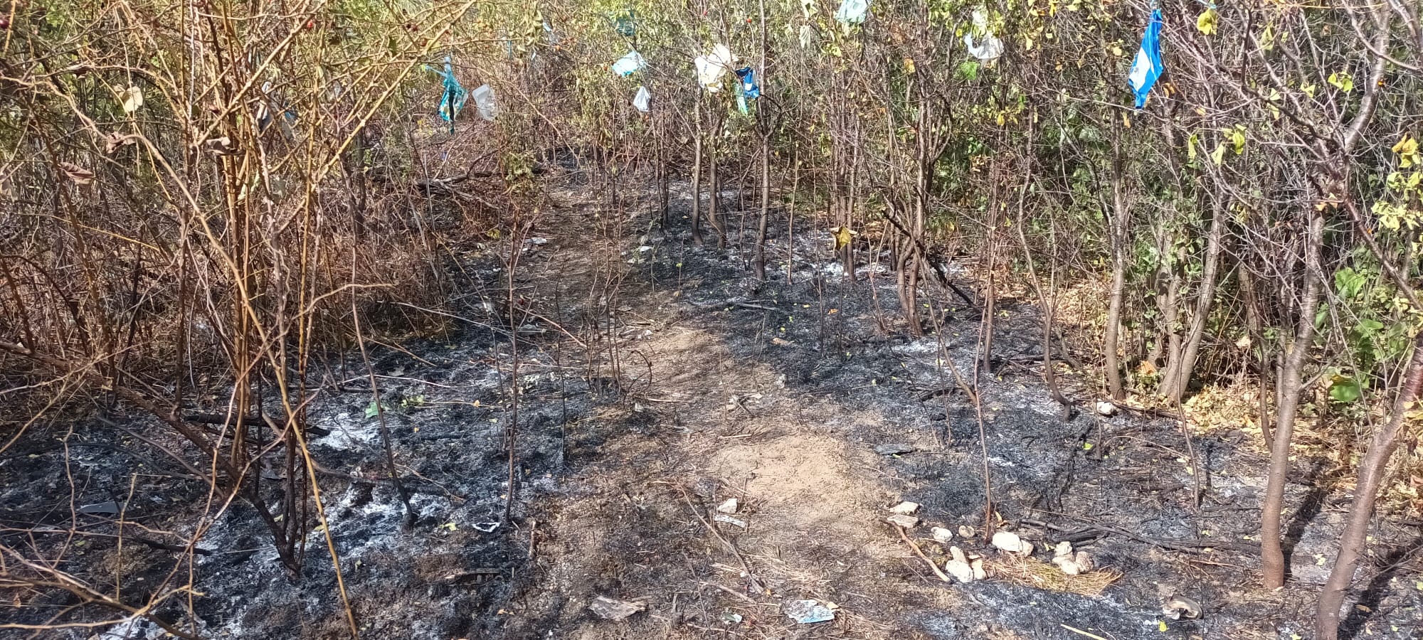 Incendiul se manifestă la vegetație uscata și mărăcinis pe o suprafața de aproximativ 0,1 ha. Pompierii acționează pentru lichidarea incendiului.