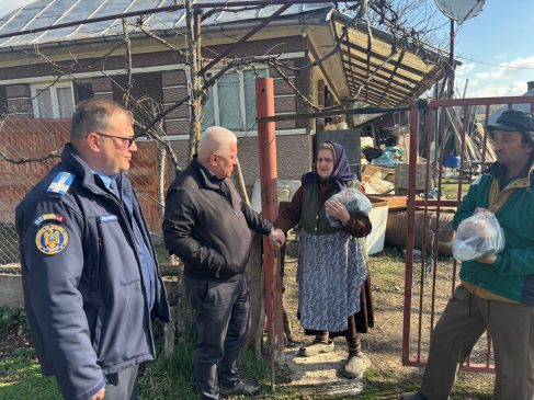 Primarul ne-a îndrumat spre satul Sângeorgiu de Meseș. Aici, aproape de pădure, am ajuns la casa „lui Fiu”. Este porecla unui localnic, un sătean plecat de ani buni, dar a cărui familie a rămas aici. Și ulița poartă această poreclă. Am fost impresionat de frumusețea zonei, de liniștea tulburată numai de câinii familiei, paznici de preț. Două pachete cu mâncare au ajuns la o femeie în vârstă și bolnavă. Am continuat drumul spre Viorel Ioan, un personaj pe care l-am găsit fascinant. Ne aștepta în drum, lânga casa de sub pădure, undeva departe, într-un loc uitat și liniștit, un adevărat refugiu din calea zgomotului urban. Purta căciulă neagră, de iarnă, era gata de munca la câmp împreună cu Dana, o minunăție de iapă. L-am salutat, jandarmii i-au dăruit pachete și a urmat o discuție care mi-a rămas întipărită în minte. „O ieu pă Dana și mă duc la grăpat. Nu îs sângur, îs cu nevasta Maria”, a povestit moș Viorel. Are aproape 80 de ani, dar ne-a spus că muncește zi de zi, că n-are timp să se îmbolnăvească, iar singurul său regret este că a îmbătrânit. Împreună cu soția sa, Viorel crește trei vaci, are porci, găini, o are și pe iapa Dana, muncește zilnic pământul, nu îi lipsește nimic, nu vrea să plece din sat și singurul lucru pe care îl cumpără este pâinea. În rest, Viorel nu mai are nevoie de nimic de la magazin. Moșul a râs și ne-a spus că merge rar la oraș, că fata îl mai duce la Zalău. „Nu regret nimic, muncesc aici cu soția mea, nu plecăm din sat, aici murim. Singurul lucru de care îmi pare rău este că am îmbătrânit, dar și așa eu n-am vreme nici să mă îmbolnăvesc”, a adăugat moș Viorel. Mi-a venit să-l iau în brațe. Astfel de oameni sunt de neprețuit. Colonelul Dan Oros l-a salutat, i-a mulțumit, la fel au făcut și celalți doi jandarmi. Ne-am luat rămas bun și am plecat. Opriri au mai fost, dar parcă îmi este greu să vorbesc despre ele. Mă opresc spunându-vă doar atât: am participat la o misiune despre suflet, bunătate, sprijin și speranță. Felicitări tuturor jandarmilor sălăjeni!