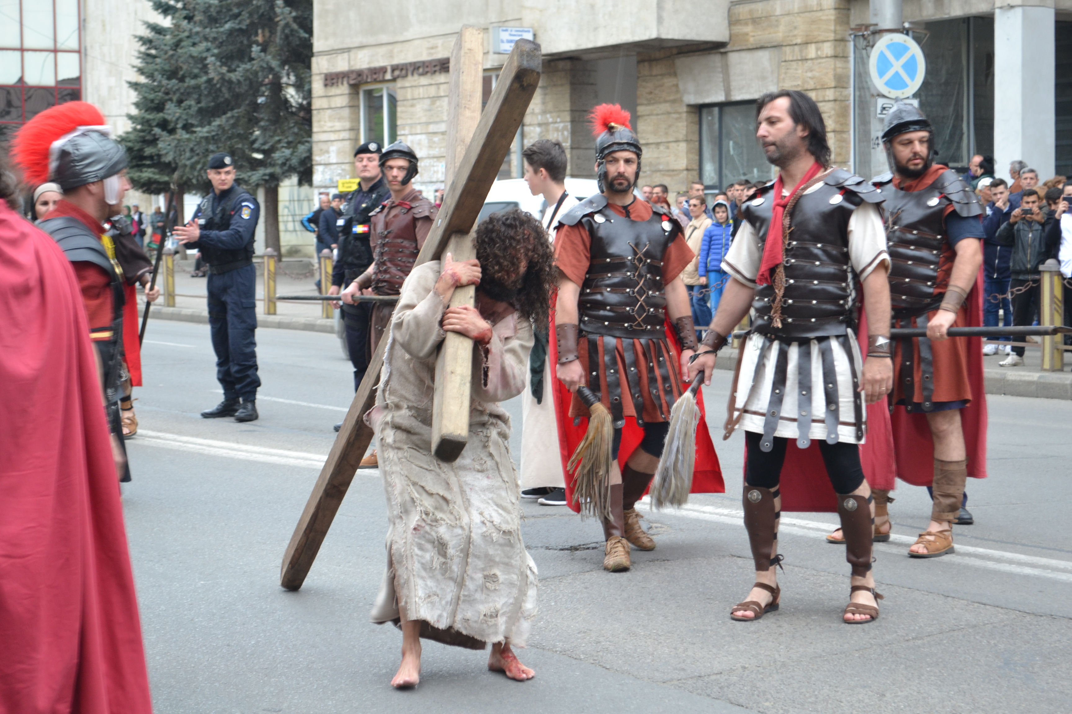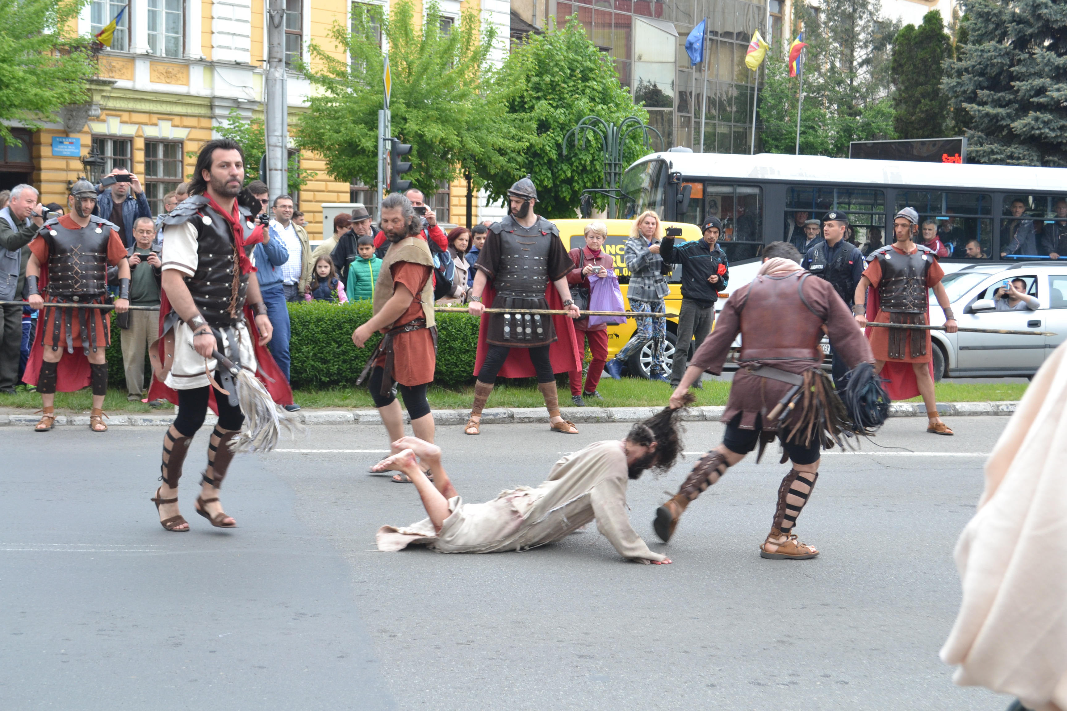 Pe parcursul a aproape două ore, actorii care i-au întruchipat pe Iisus Hristos, Fecioara Maria, Pilat din Pont, Baraba, mironosiţele, soldaţii romani şi pe celelalte personaje biblice au recreat atmosfera de acum 2.000 de ani şi au expus într-o manieră artistică şi cu păstrarea filonului istoric, drumul Mântuitorului pe Muntele Golgota şi crucificarea Lui.