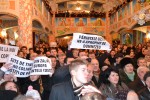 Aproape 200 de credincioşi ortodocşi au protestat sâmbătă, 2 februarie, în faţa bisericii Sfântul Ştefan din Zalău, faţă de intenţia Episcopiei Sălajului de a-l muta pe preotul Ioan Coste la o altă parohie.