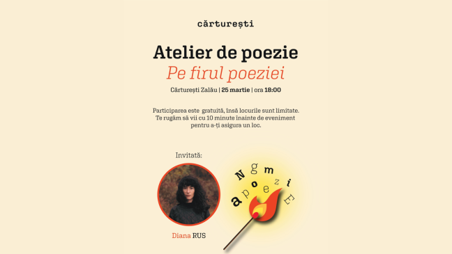 Atelierul va avea loc la Cărturești Zalău, iar participarea este gratuită, în limita locurilor disponibile.