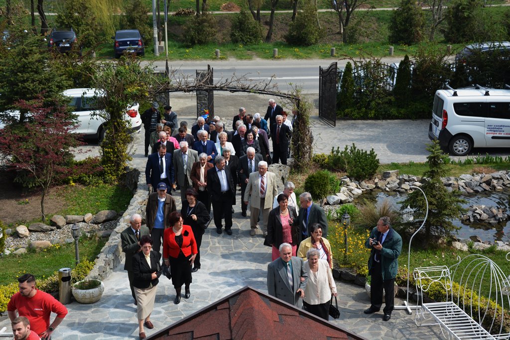 A urmat o masă comună, într-o atmosferă agreabilă, pe fondul muzical asigurat de către dl. Romeo Oltean (de la Primăria șimleuană), cel care a realizat toată sonorizarea ceremoniei. În acest timp, la fiecare masă, pe la care au trecut Septimiu Cătălin Țurcaș și Szabó Ernö-Csaba, administrator public al orașului Șimleu Silvaniei, s-au depănat amintiri, s-a etalat o parte din realizările fiecăruia, iar sărbătoriții și-au reînnoit jurămintele făcute acum 50 de ani și, închinând un pahar cu vin de Șimleu Silvaniei, și-au urat multă sănătate și bucurii nenumărate, cu gândul la… „Nunta de Diamant”!