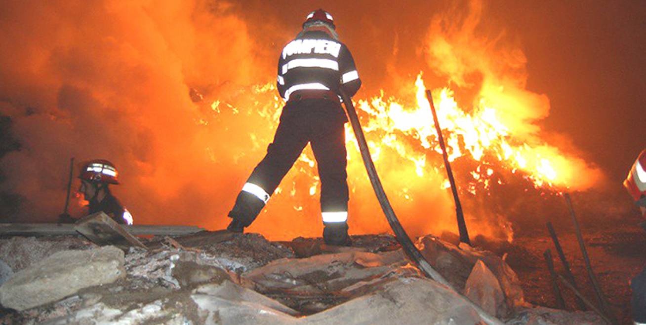 Hală cuprinsă de flăcări. Pompierii intervin în acest moment