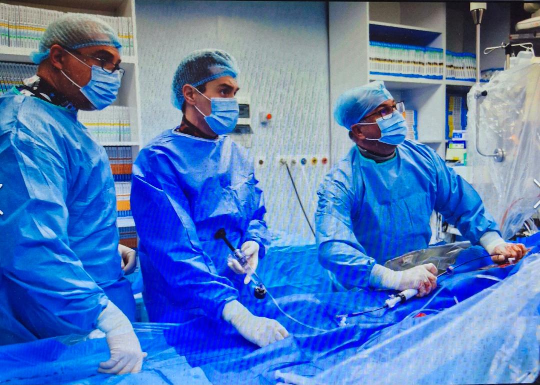 În acest context, acceptând, redau o parte din declarațiile dominiei sale. „Cardiologia intervențională este o ramură de graniță între cardiologia clasică (cea cu stetoscop, tensiometru, analize și electrocardiogramă) și chirurgia cardiacă. S-a dezvoltat enorm după anii 90 și a devenit, practic, extraordinar de prezentă în tot ce înseamnă medicina actuală, după anii 2.000. Valva aortică este o structură care separă camera care pompează sângele din inimă spre corp, respectiv, ventriculul stâng și aorta. Aorta este principalul vas de sânge al organismului care distribuie sângele în tot corpul. Valva aortică este o structură care permite curgerea unidirecțională, este ca o supapă de la o roată de mașină. Acea supapă este blocată în momentul de față. Ea nu mai permite pătrunderea sângelui în corp. Iar nevoile de sânge ale organismului nu mai sunt suficiente. Până acum 21 de ani, singura metodă care stătea în fața unei asemenea patologii era chirurgia clasică, chirurgia deschisă, pe cord oprit, cu anestezie generală, cu deschiderea cutiei toracice, cu oprirea inimii, înlocuirea valvei aortice cu o proteză, repornirea inimii și tot ce înseamnă efectele secundare majore ale unei asemenea operații traumatizante. În anumite condiții, respectiva operație putea să devină mult prea riscantă, astfel încât să devină chiar generatoare de pierderea pacientului. Acum 21 de ani a început să se dezvolte o metodă, când s-a făcut prima implantare de valvă aortică pe un cord neoprit, pe inima care funcționa în continuare, cu ajutorul unor catetere, niște tuburi de plastic cu diametru de peste 5 milimetri, necesitând niște artere mari pe unde să fie introduse, iar aceste catetere ajung la nivelul valvei aortice, care este blocată. Valva aortică este împinsă din interior spre exterior, către peretele aortei, iar în locul valvei aortice, care nu mai funcționează, este implantată o proteză care este, până la urmă, ceea ce știm de la protezele chirurgicale, o structură din pericard bovin tratat și care stă pe un stent, pe o structură de metal, care îi susține funcționarea. Stenoza valvei aortice este o boală care devine o problemă majoră de sănătate publică, odată cu îmbătrânirea populației. Este vorba despre degenerarea, de îmbătrânirea structurii respective, ea nu mai funcționează, începe să devină stresată de funcționarea sa îndelungată, iar răspunsul organismului în urma acestor stresuri este depunerea de materiale, inclusiv calciu, pe această structură, încât ea devine un obstacol. De aceea TAVI este o procedură revoluționară, pentru că nu mai trebuie apelat la chirurgia deschisă, cea care era mult mai traumatizantă, iar recuperarea mult mai dificilă”.