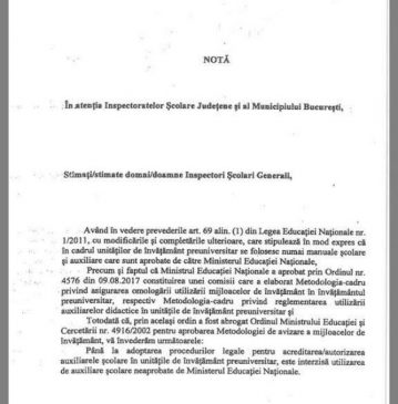 Ministerul Educației a trimis o circulară către toate inspectoratele școlare în care anunță că „folosirea manualelor auxiliare neaprobate este interzisă în școli. Dacă nu este respectată această obligație, Ministerul Educației va sesiza organele de stat abilitate”. Puteți vedea mai jos circulară trimisă de Ministerul Educației către profesori.