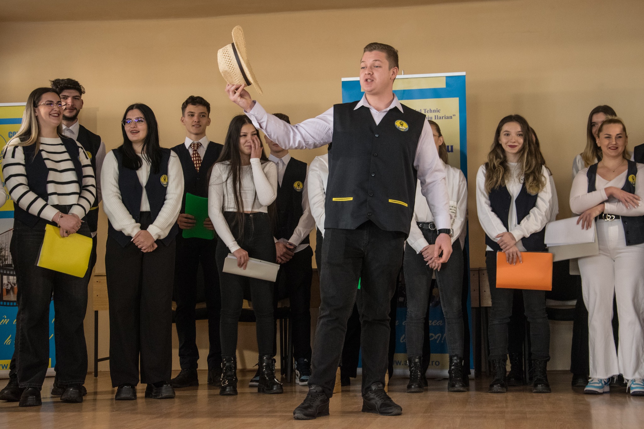 Joi, 21 decembrie 2023, sala festivă a Colegiului Tehnic „Alesandru Papiu Ilarian” s-a transformat într-o casă primitoare unde gazdele -cadrele didactice- au așteptat colindătorii.