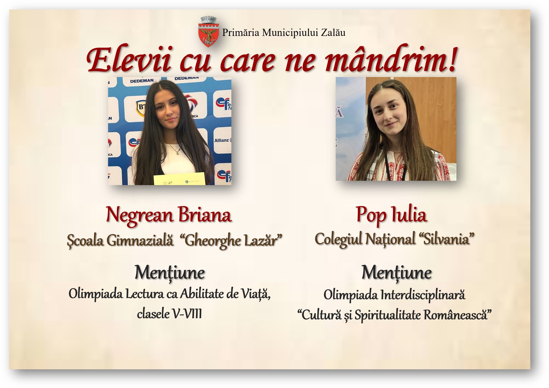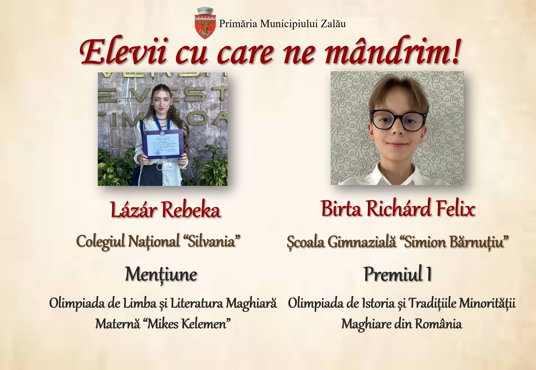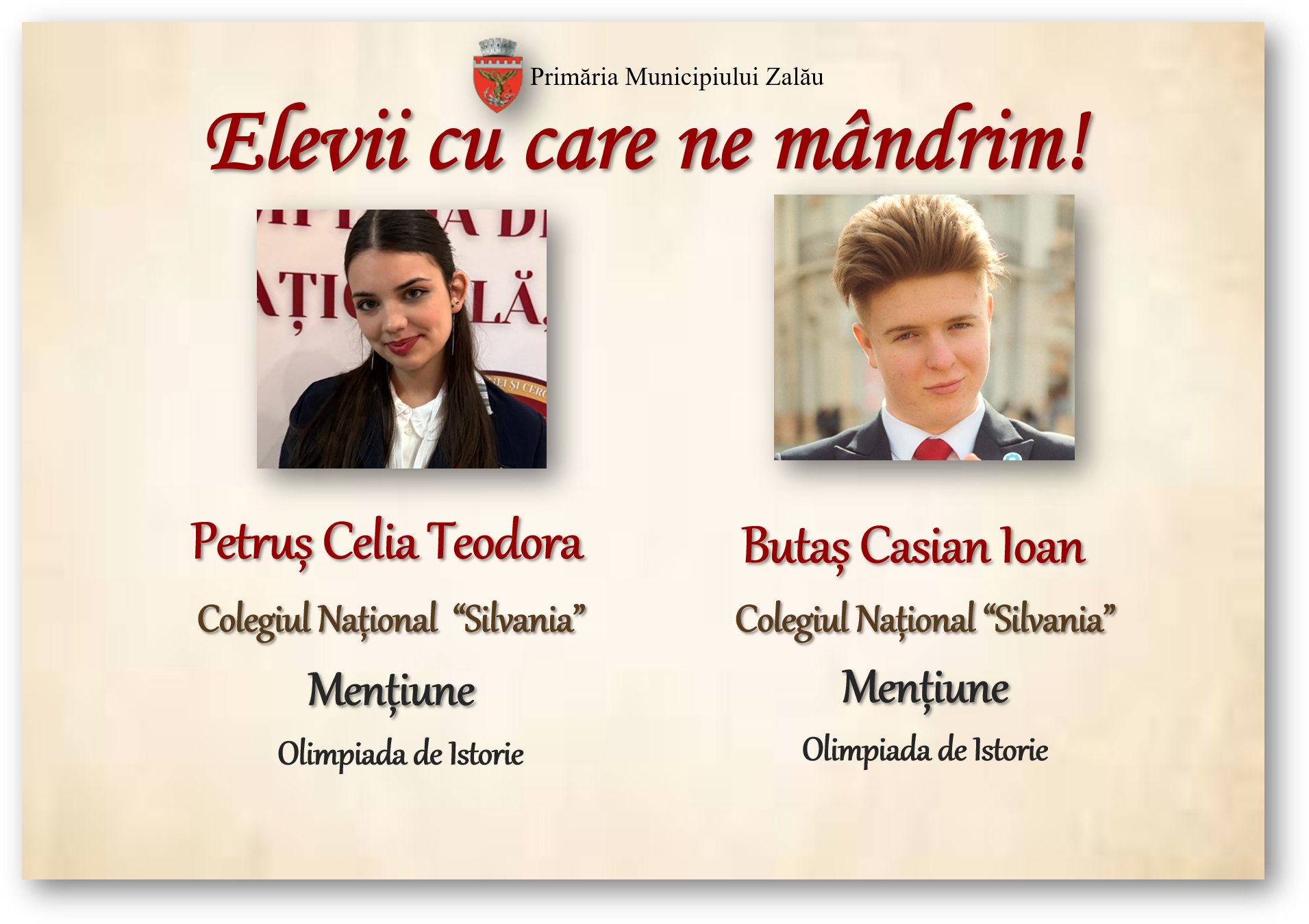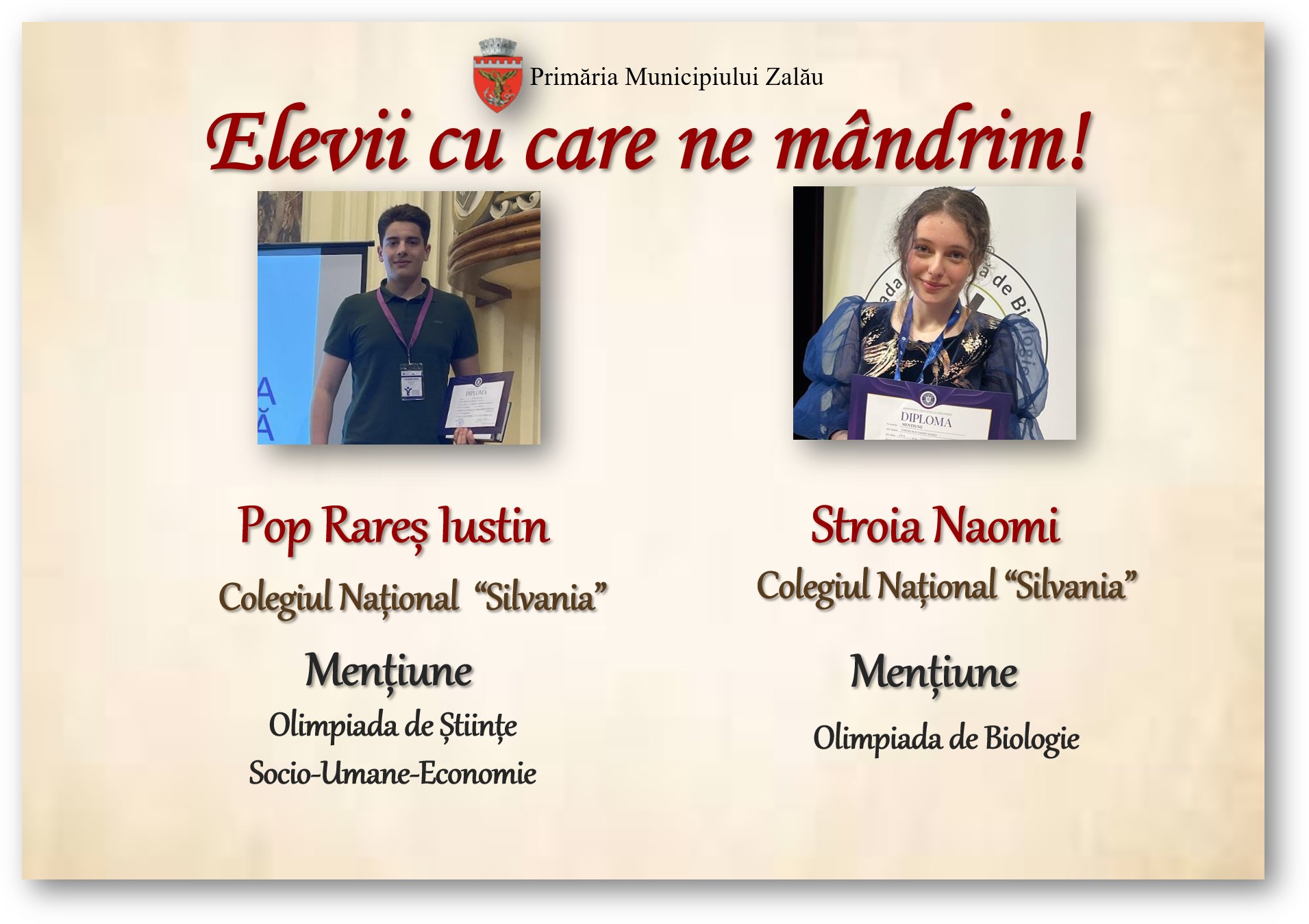 Municipiul Zalău are elevi cu care se mândrește, elevi care au obținut rezultate remarcabile la olimpiade naționale și care merită cunoscuți și promovați.