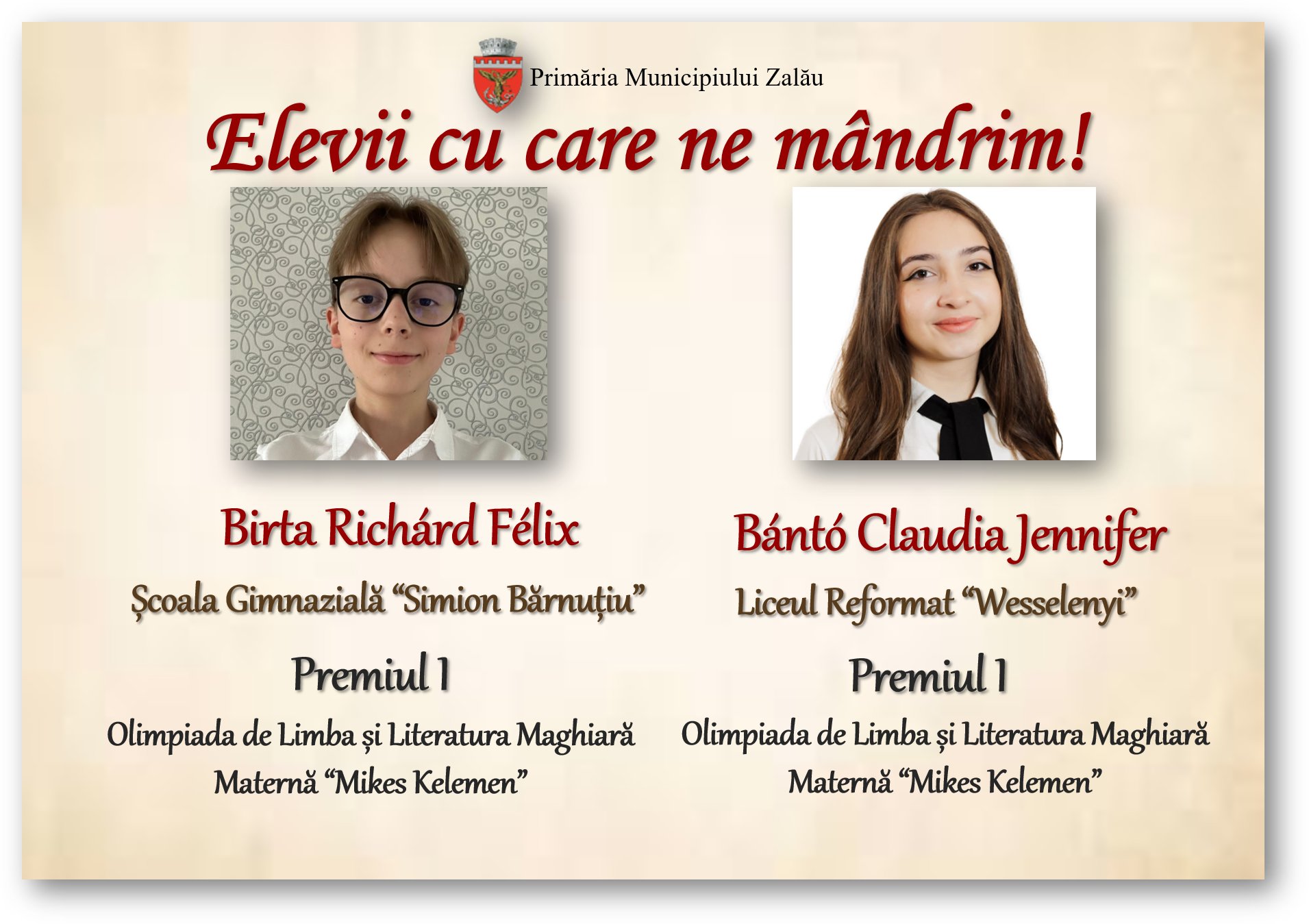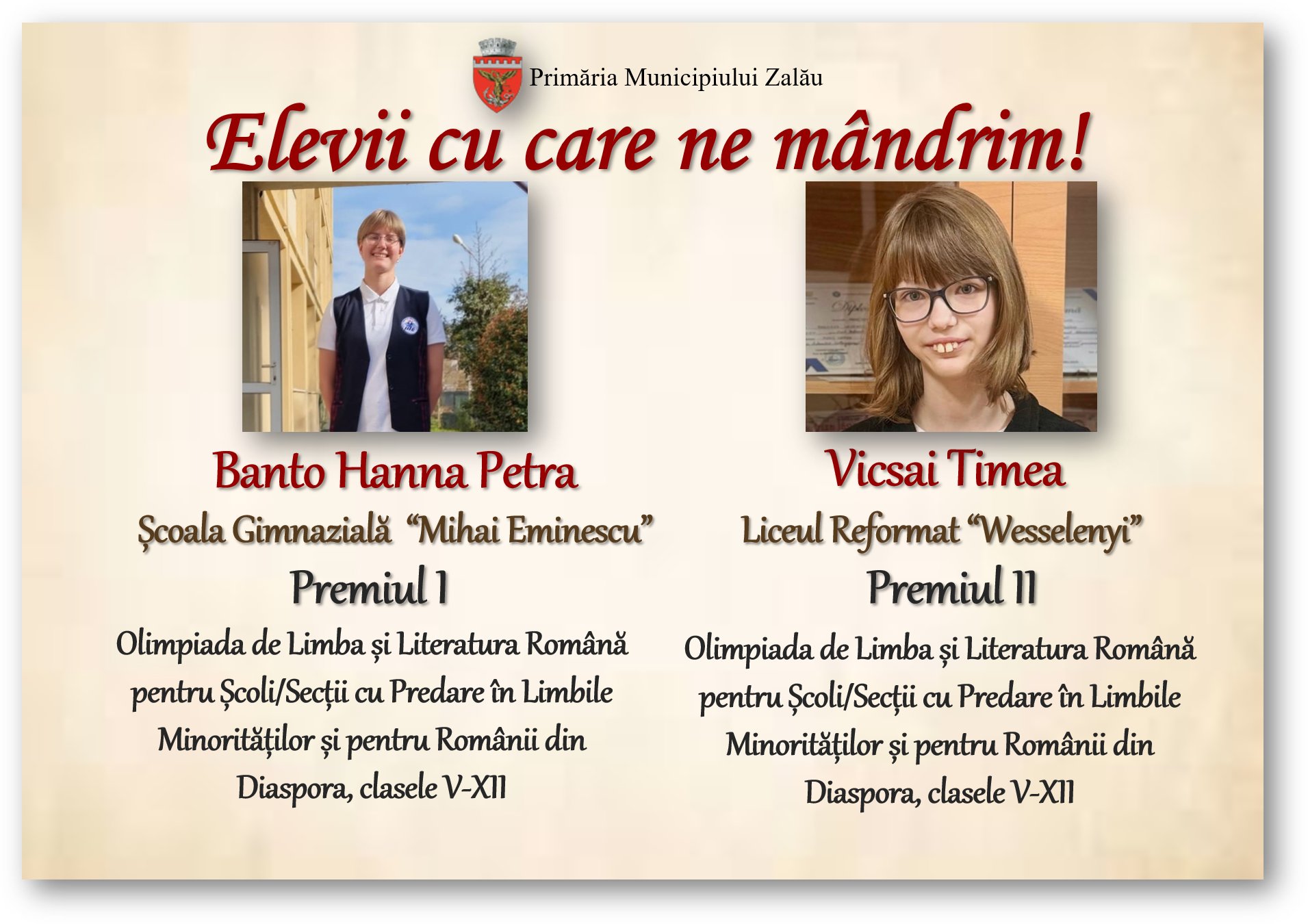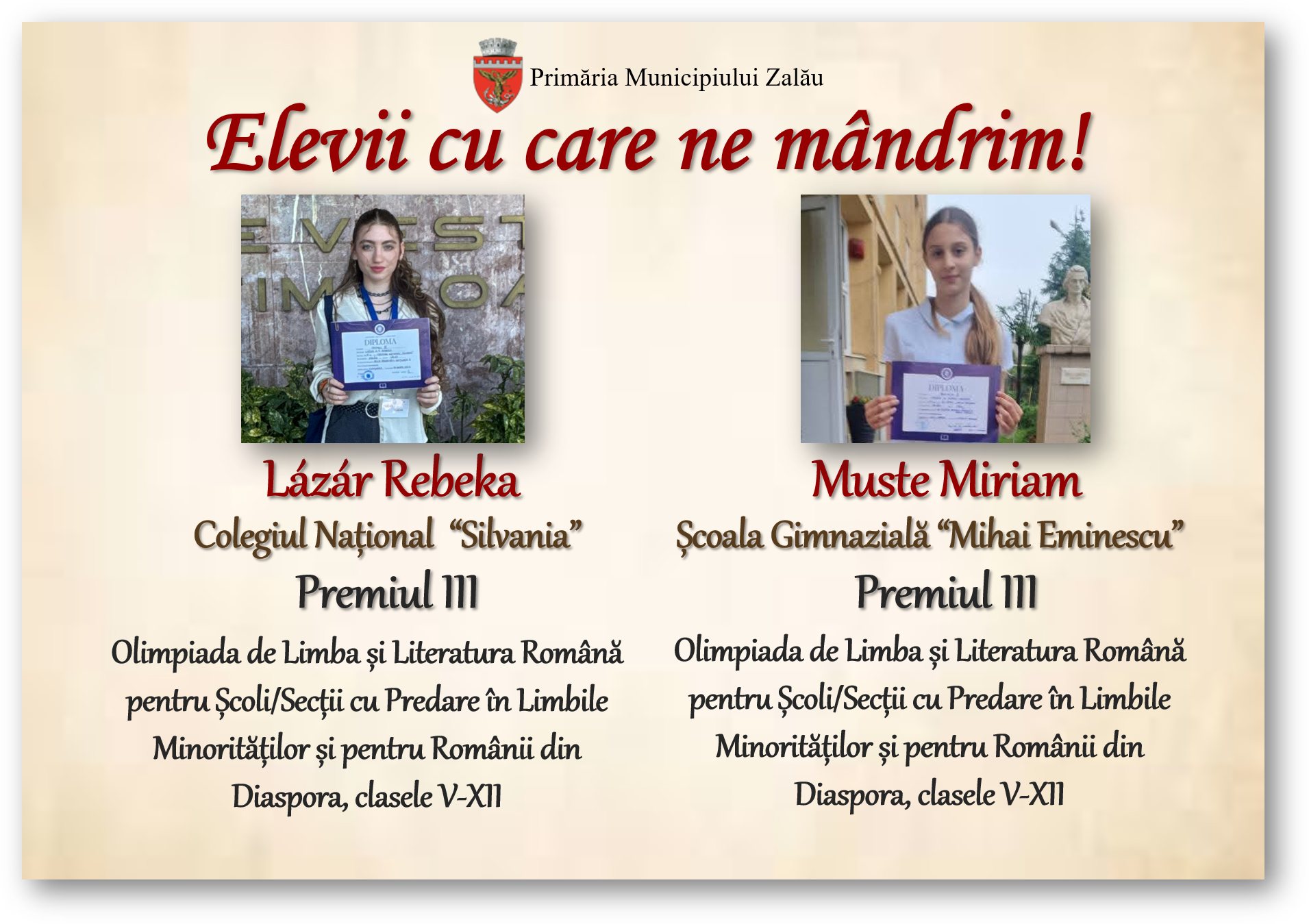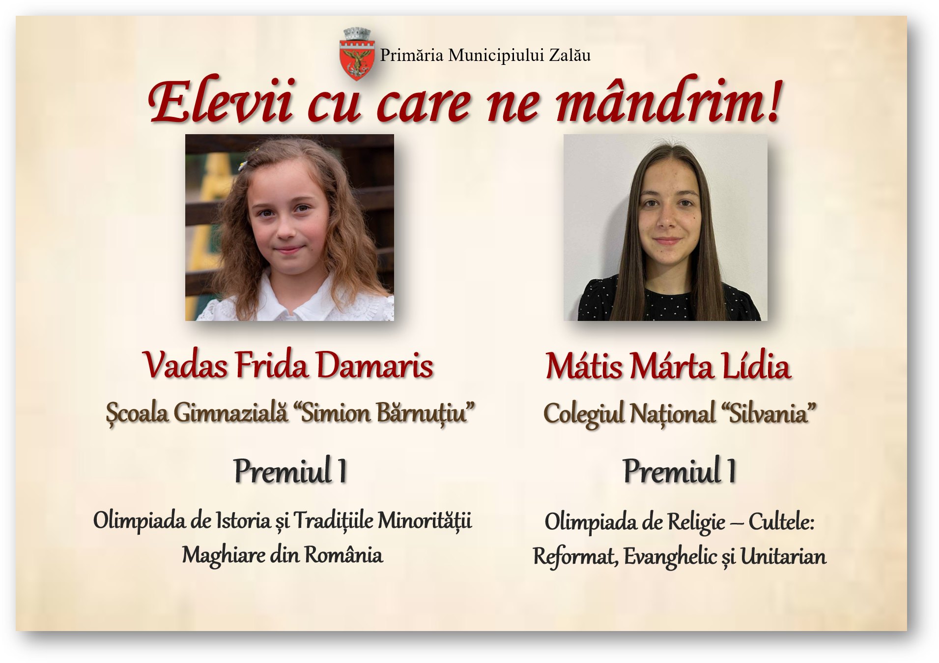 Municipiul Zalău are elevi cu care se mândrește, elevi care au obținut rezultate remarcabile la olimpiade naționale și care merită cunoscuți și promovați.