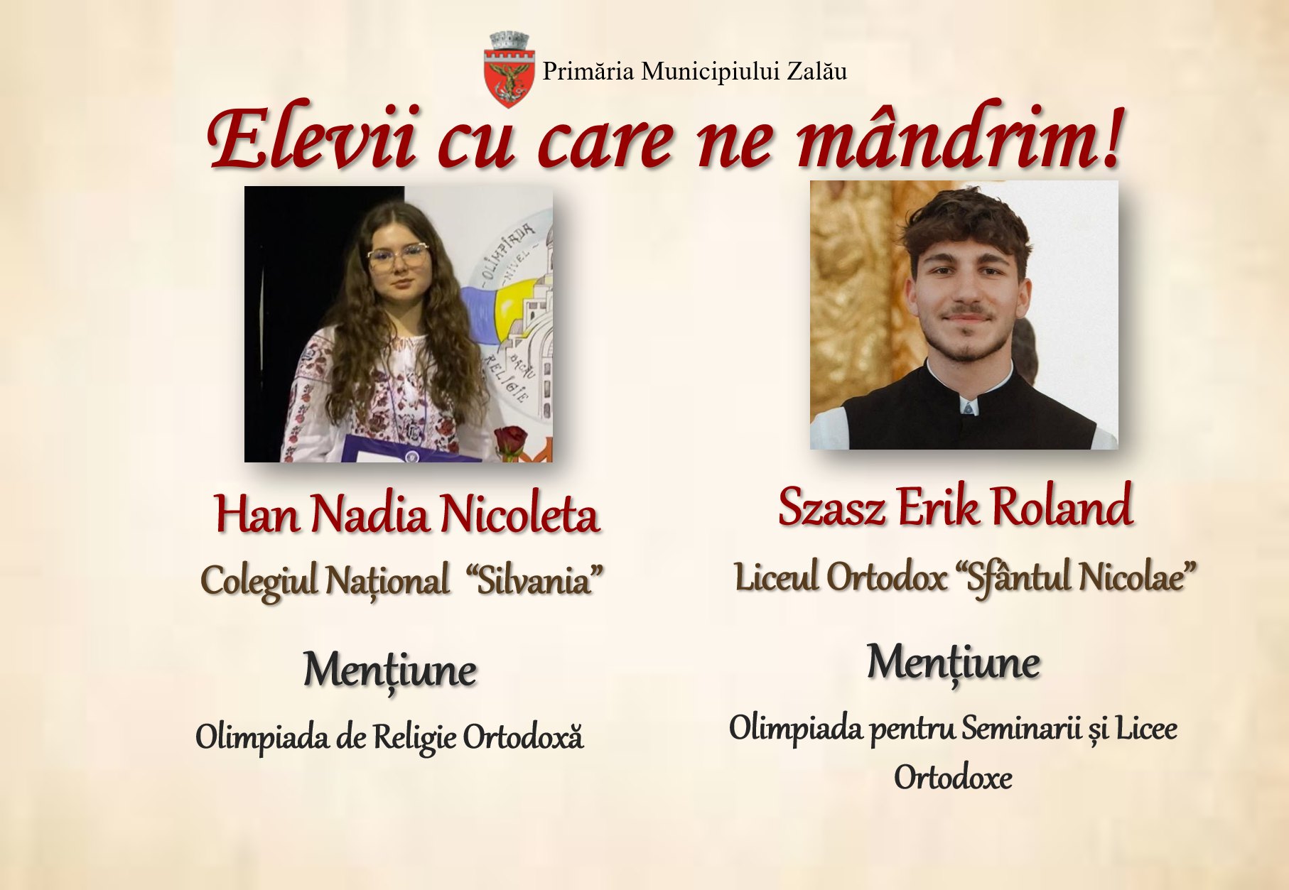 - Szasz Erik Roland, de la Liceul Ortodox “Sfântul Nicolae”, mențiune la Olimpiada pentru Seminarii și Licee Ortodoxe
