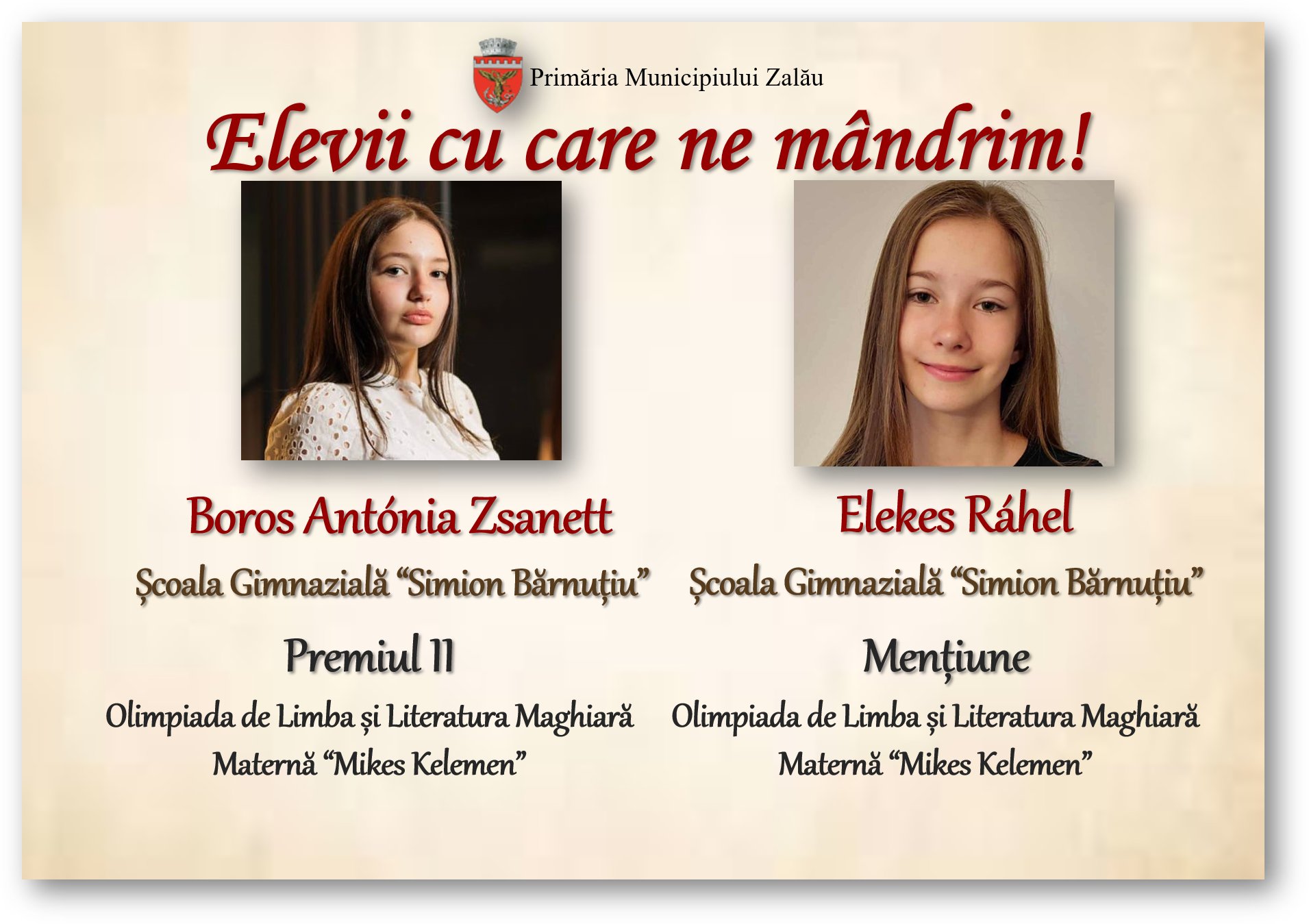 - Boros Antónia Zsanett, de la Școala Gimnazială “Simion Bărnuțiu”, premiul II la Olimpiada de Limba și Literatura Maghiară Maternă “Mikes Kelemen”