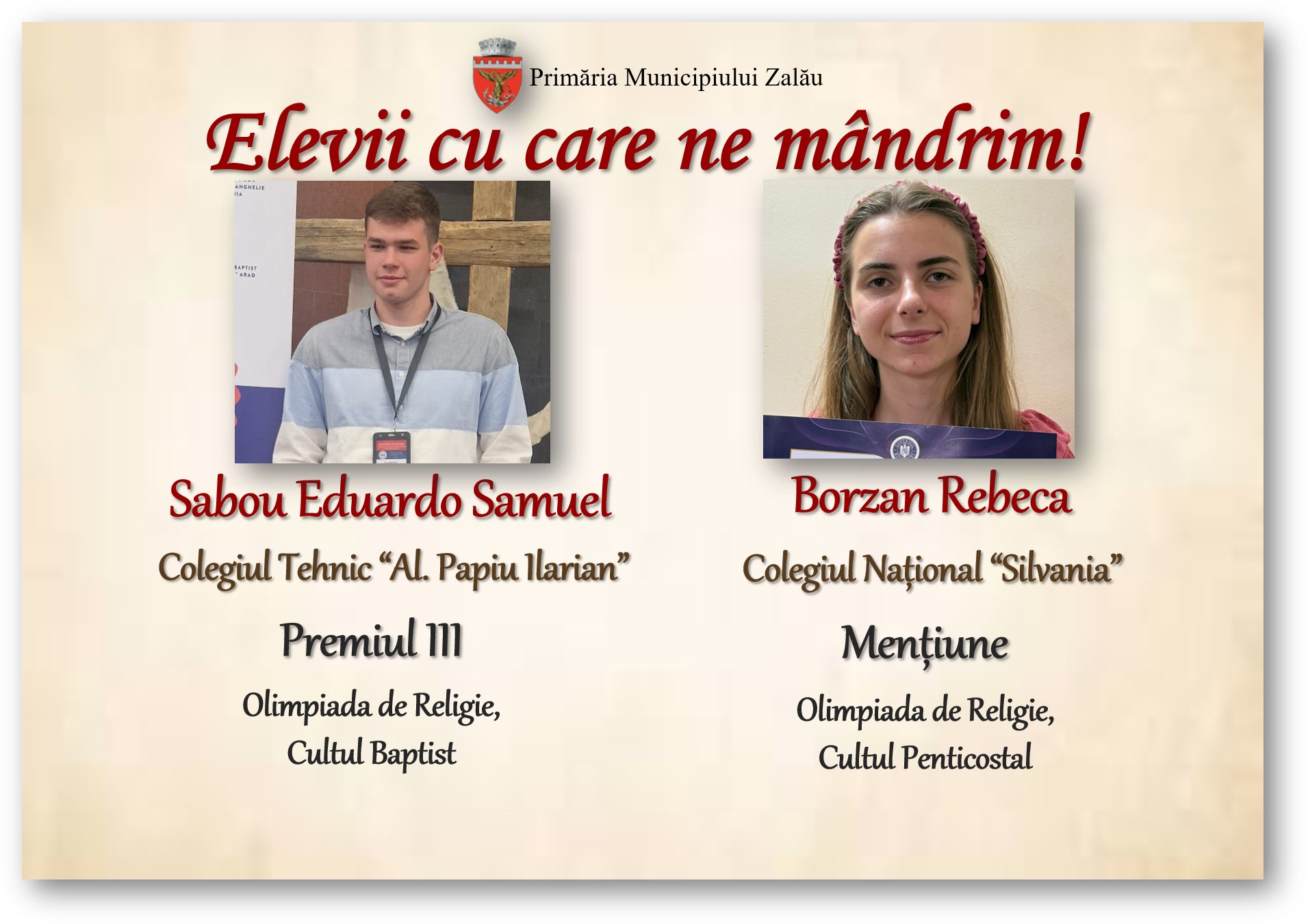 - Sabou Eduardo Samuel, de la Colegiul Tehnic “Alesandru Papiu Ilarian”, premiul III la Olimpiada de Religie, Cultul Baptist
