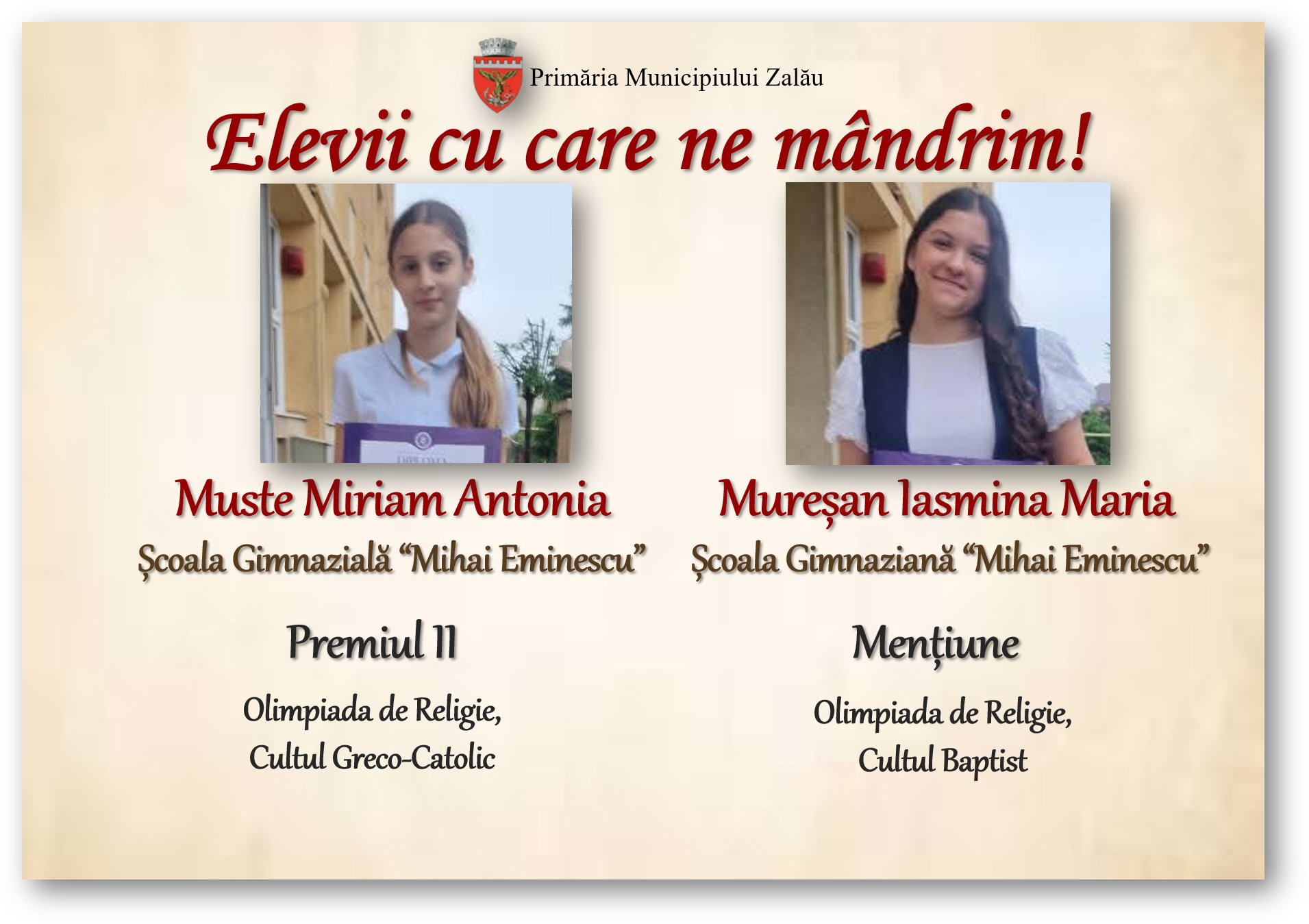 - Muste Miriam Antonia, de la Școala Gimnazială “Mihai Eminescu”, premiul II la Olimpiada de Religie, Cultul Greco-Catolic