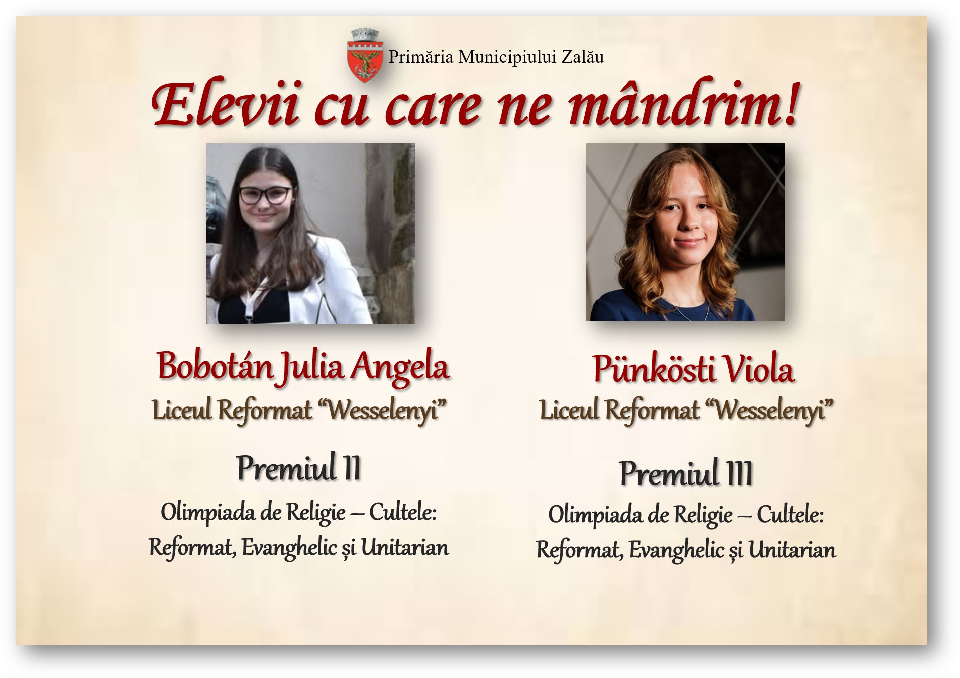 - Bobotán Julia Angela, de la Liceul Reformat “Wesselenyi”, premiul II la Olimpiada de Religie-Cultele: Reformat, Evanghelic și Unitarian
