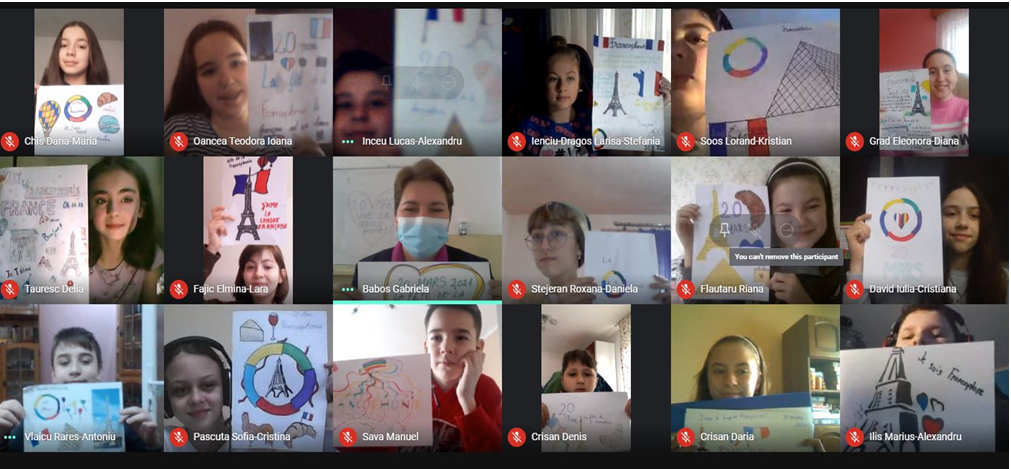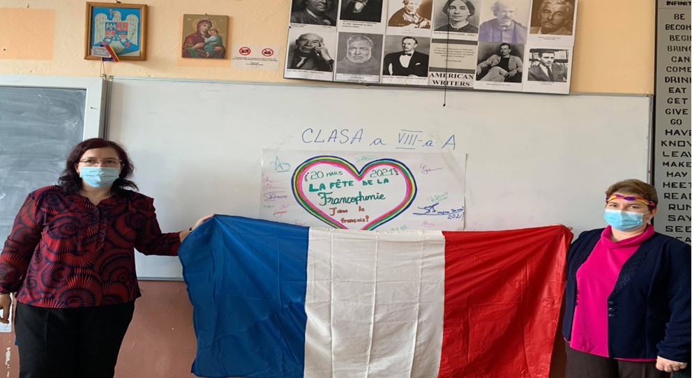 Proiectul educativ local „Les journées de la Francophonie pour les grands et pour les petits” a avut ca obiective: promovarea limbii franceze, sensibilizarea elevilor pentru literatura și cultura francofonă, creșterea interesului pentru învățarea limbii și civilizației franceze, cu ajutorul cântecului și teatrului francofon, dezvoltarea memoriei afective, a atenției și a spiritului de observație. Din activitățile desfășurate pe parcursul săptămânii 15-19 martie putem aminti: Importanța și simbolurile Francofoniei, Atelier de teatru în cadrul căruia am pus în scenă Actul I, Scena III din comedia “Chirița în provincie” de Vasile Alecsandri, karaoke și dans după cântecul “Tous unis- la Francophonie”, Atelier de artă în cadrul căruia am învățat să creăm un afiș de promovare a Francofoniei.