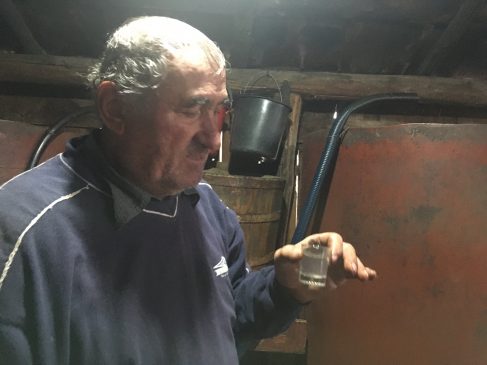 Pălincarul se prezintă. Îl cheamă Ion, cunoaște meserie, o știe de mulți ani. Îl privesc din nou. Doamne, chiar seamănă cu celebrul actor. Sper că nu vorbesc prostii, dar așa îmi pare. Îi mulțumesc pălincarului pentru disponibilitate, pentru că a stat de vorbă cu mine, mi-a povestit. Îl rog să ne facem niște fotografii. Zâmbește și acceptă. Ne strângem mâna și îl las. Omul își scoate șapca și se așază lângă măsuța de la perete. Mănâncă bine, are mult de muncă. Eu înghit în gol. Râd și eu, îmi amintesc de dieta mea. Îmi îndrept privirea către cel ce pare proprietarul prunelor. Bărbatul râde și îmi spune să-i fac și lui o fotografie. Mă conformez, încep discuții, povești. Pălincia e și loc de socializare, aici se stă cu zilele, noaptea n-ai ce face, mai un cartof în jar, mai o glumă, căldura e de la cazan. Aici auzi multe, îți aduci aminte, îți vin speranțe sau te mai amăgești. Dumnezeu știe ce vremuri vin. Proprietarul îmi spune că a avut multe prune în acest an, peste șase tone. Le-a cules pe toate și le-a adus la pălincie. Urmează pălinca și e multă. E băutura care deschidea uși la București, iar eu cred că încă le mai deschide. Pălinca îți permitea să îți alegi Dacia 1300 din depozitul din Baia Mare, poate primeai și ceva în plus, pălinca îți găsea cameră liberă la hotel, închidea ochii vreunei secretare de prin capitală sau îți făcea rost de Pepsi-Cola atunci când și ultima rază de speranță s-a năruit.