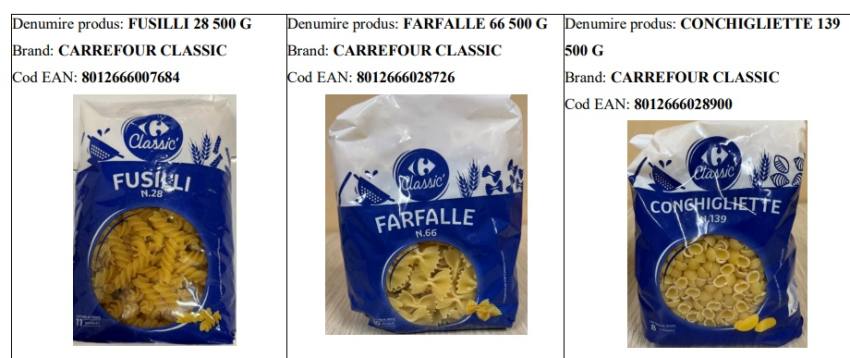 CARREFOUR ROMÂNIA S.A. a inițiat retragerea și rechemarea de la clienți a pastelor făinoase fabricate de GHIGI 1870 S.p.A, indiferent de lot sau de termen de valabilitate. Motivul rechemării: lipsa mențiunii „poate conține urme de muștar” pe eticheta acestor articole.
