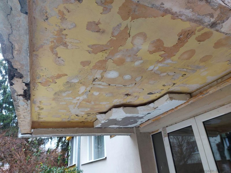 Pare halucinant, dar este adevărat. Izolația aplicată pe tavanul terasei care permite accesul în blocul N de pe strada 9 Mai din Zalău s-a prăbușit. Locatarii sunt consternați și spun că marele noroc a fost că nimeni nu se afla acolo în momentul prăbușirii izolației.