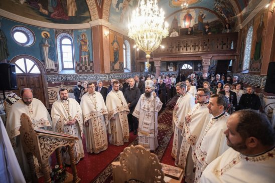 Răspunsurile liturgice au fost oferite de grupul vocal „Doxa”, dirijat de profesorul Florin Lazăr, de la Liceul Ortodox „Sfântul Nicolae” din Zalău. La chinonic (imn bisericesc), tânăra solistă Denisa Cristea a interpretat pricesne. La final, părintele paroh Răzvan Govor a mulțumit ierarhului pentru prezență și binecuvântare.