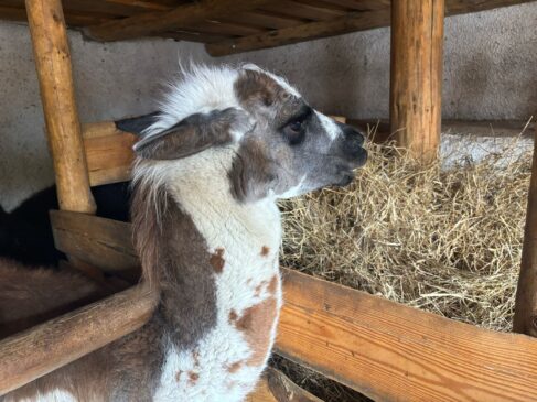 M-am apropiat de boxa în care e Lulu. A venit lângă gard și a început să-și miște buzele acoperite cu o piele fină și mult puf. De fapt, Lulu e o măgăriță și urmează să devină mămică. E tare frumoasă și blândă. Nu știam ce vrea, dar am fost atenționat că obișnuiește să primească daruri de la vizitatori: o bucată de morcov, un măr, un biscuit, ceva dulce, crocant. O, nu. Eu venisem cu mâna goală. Vis-à-vis, într-o altă boxă locuiește pe timpul nopții o familie de lama. El e Charlie, iar ea este Camila. Din dragostea lor s-a născut Lady. E frumoasă și foarte blândă. Ceva mai încolo sunt poneii.