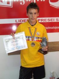 Pe langa medalia, diploma si tricoul de campion, portarul zalauan a primit si un trofeu pentru cel mai bun portar din tara la categoria sa de varsta.